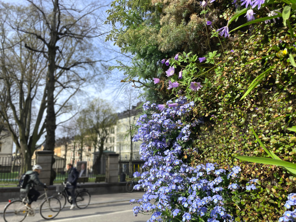 Precis vid Östermalmstorg i Stockholm, på Storgatan 1, finns en vertikal trädgård längst en husfasad. Idag är den inte särskilt stor, men eftersom den uppskattas av fotgängare, bostadsrättsföreningen och närliggande kontor kommer den nu att utökas och täcka nästan hela fasaden. Detta är det första av en rad goda exempel på naturbaserade lösningar från våra medlemmar som C/O City nu lyfter.