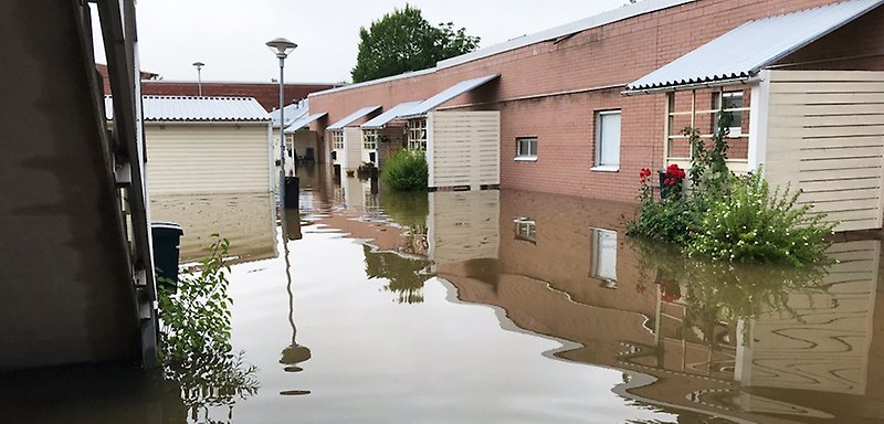 Bilden visar ett område i Gävle efter skyfallen 2021. Foto: Högskolan i Gävle