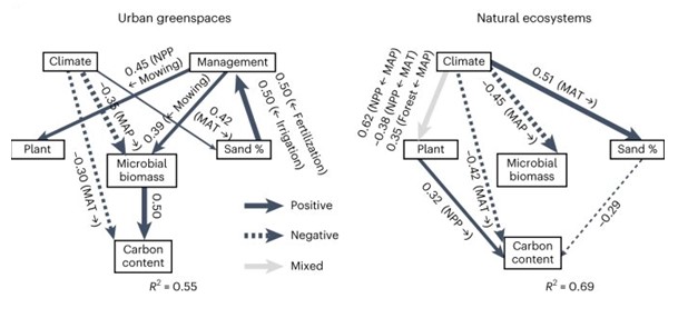 Bild: Drivers of soil organic carbon concentration in urban greenspaces and adjacent natural ecosystems.