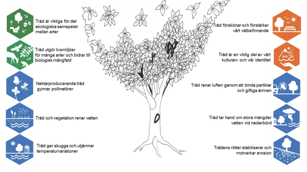 Träd spelar en viktig roll i den byggda miljön genom att erbjuda en mängd ekosystemtjänster och stödja stadens anpassning till klimatförändringar. Träd har förmågan att sänka temperaturen under varma dagar och hantera dagvatten. Därför är det av stor betydelse att ha en tydlig översikt över trädens förekomst och placering i våra städer och tätorter.