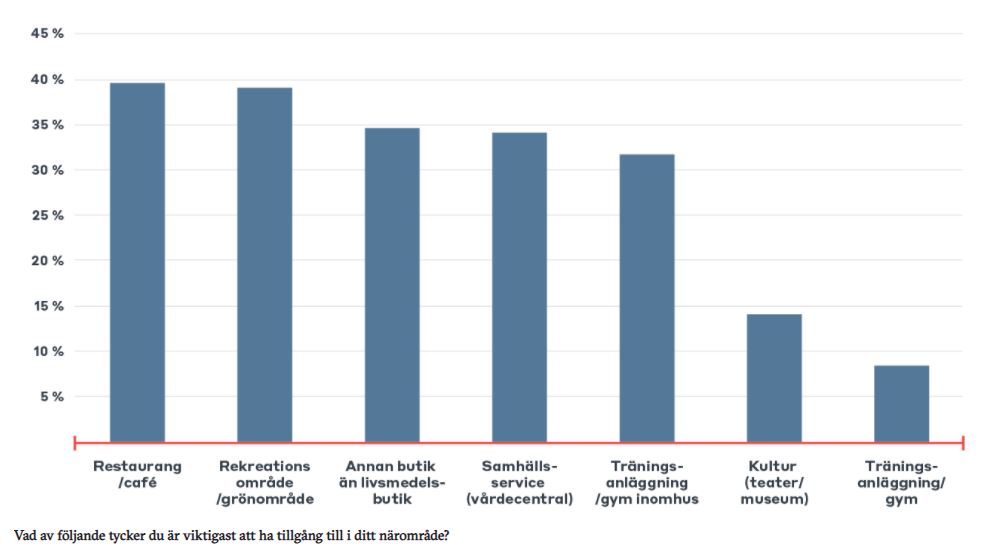 Grönområden hamnar i topp när det gäller frågan om vad som är viktigast att ha nära hemmet – till och med högre än service som butiker och vård. Det visar en ny studie av analys- och teknikkonsultföretaget WSP, medlem i C/O City.