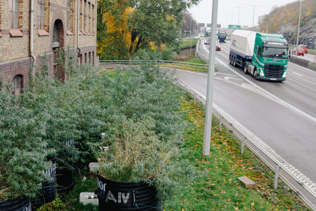 Ett forskningsprojekt i Göteborg undersöker hur växter och jord vid vägkanten kan rena dagvatten från E6, där cirka 100 000 fordon passerar dagligen, från mikroplaster, zink, koppar och bly. Projektet använder 13 tunnor fyllda med olika filtermaterial (biokol, torv och aska från sopförbränning), där olika växtarter som havtorn, rödsvingel, veketåg och strandtrift har planterats. Dessa tunnor bevattnas med förorenat vatten som samlas upp från E6, och forskarna mäter sedan mängden föroreningar som filtrerats bort.