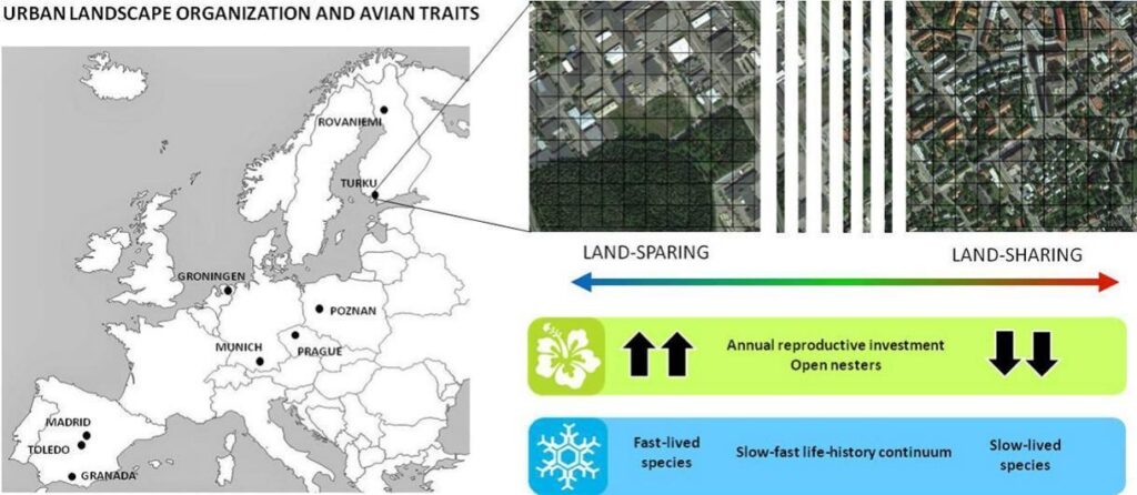 Studiens huvudsakliga slutsats är att designen av stadsområden kan spela en avgörande roll för närvaron av arter med varierande egenskaper. Detta har inte bara konsekvenser för förbättringen av ekosystemen, utan även för allmänhetens hälsa. För att genomföra studien samarbetade forskargruppen med vetenskapsmän från forskningscentra i Finland, Polen, Tyskland, Nederländerna och Tjeckien. Tillsammans samlade de in data om fågelsamhällen i de två huvudtyperna av stadsutveckling, nämligen “land-sparing” och “land-sharing”, i flera europeiska städer.