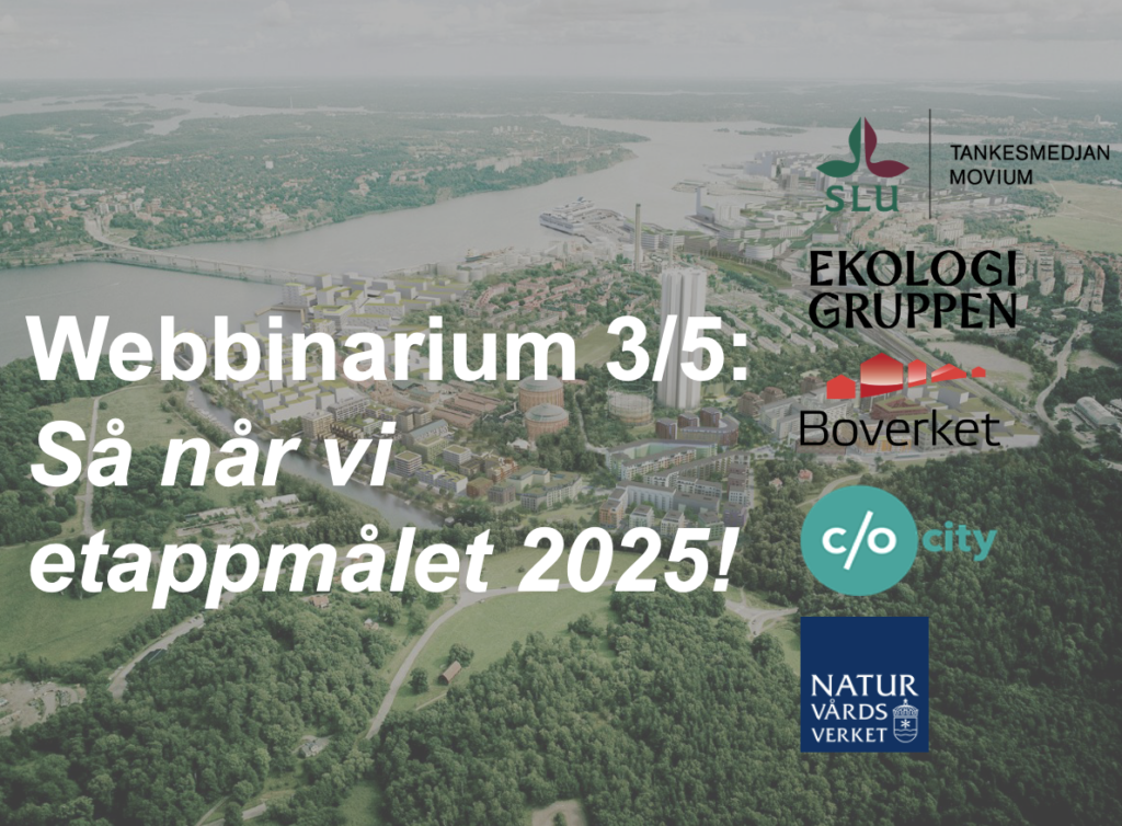 C/O City är glada att presentera webbinariumet tillsammans med våra samarbetspartners Naturvårdsverket, SLU Tankesmedjan Movium, Ekologigruppen och Boverket. Enligt etappmålet ska en majoritet av kommunerna senast år 2025 ta tillvara och integrera stadsgrönska och ekosystemtjänster i urbana miljöer vid planering, byggande och förvaltning i städer och tätorter.